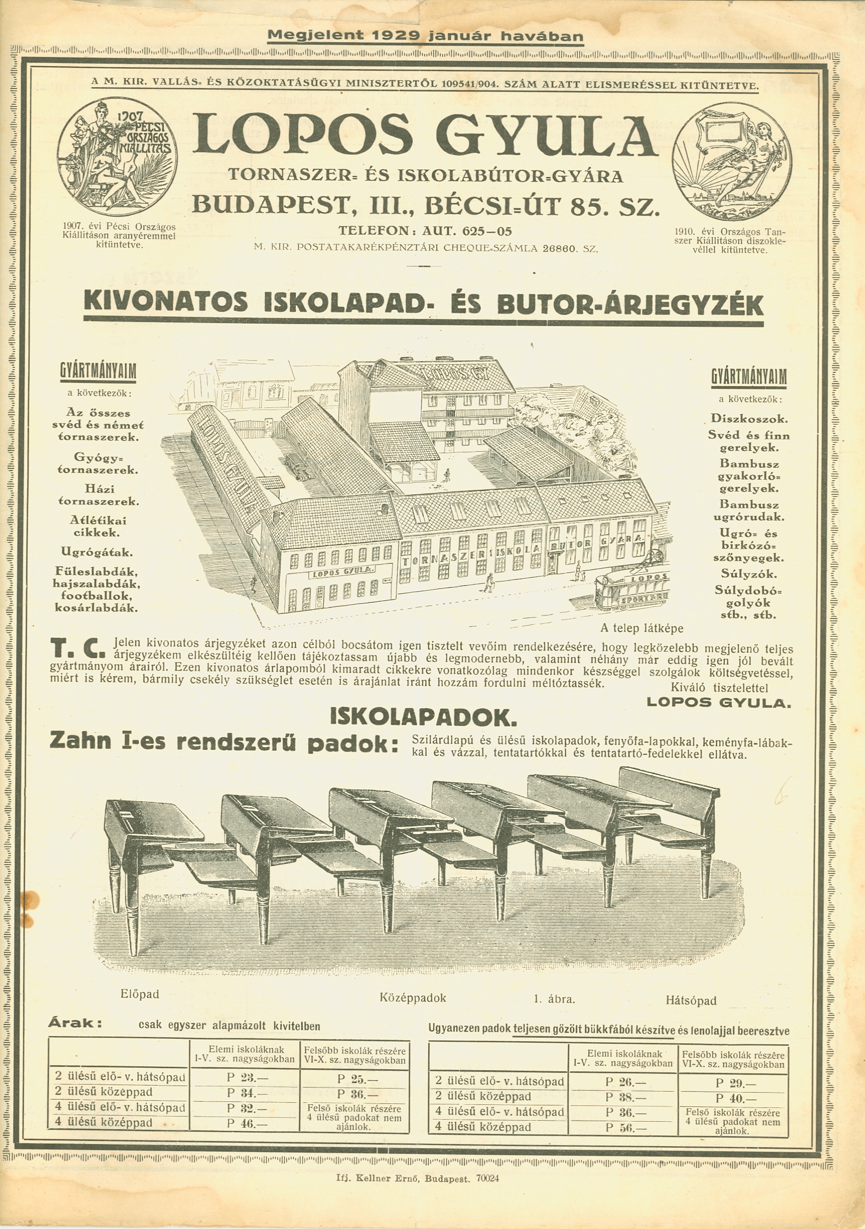 Gyártó: Lopos Gyula Tornaszer- és Iskolabútor Gyára