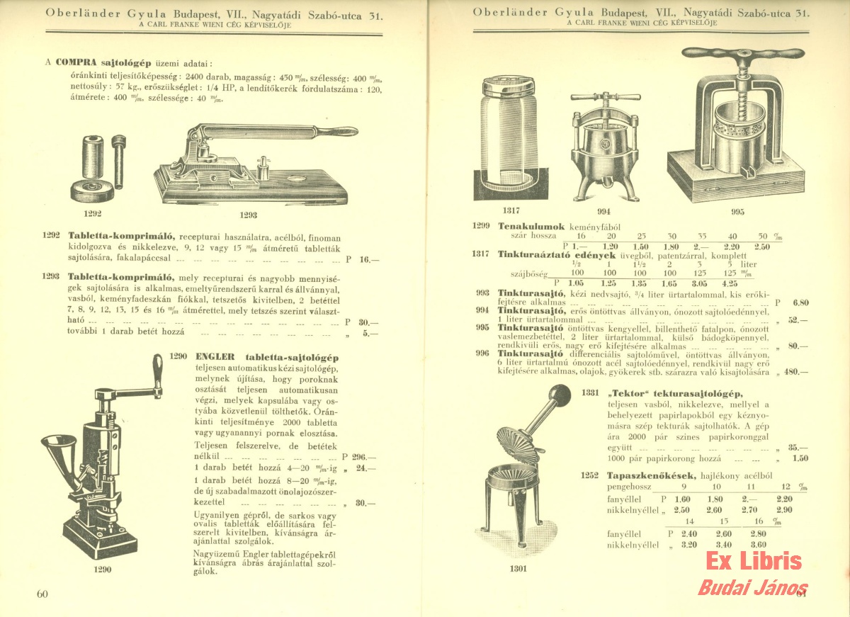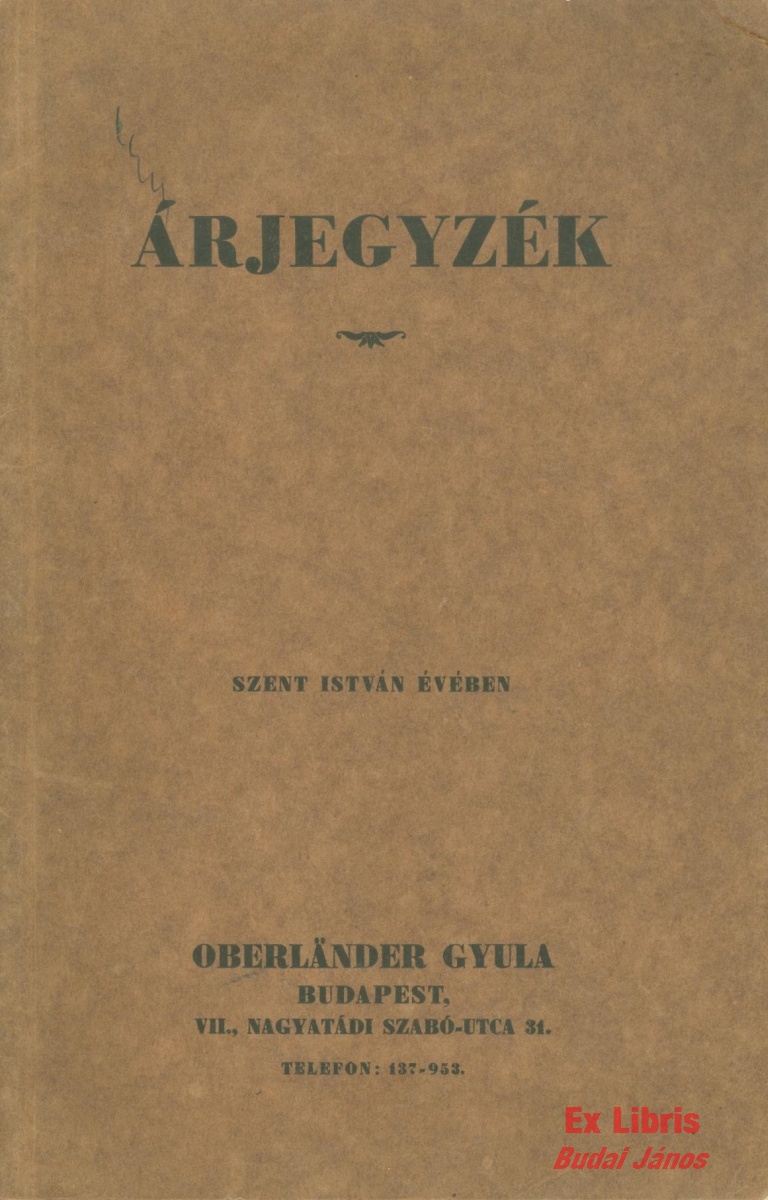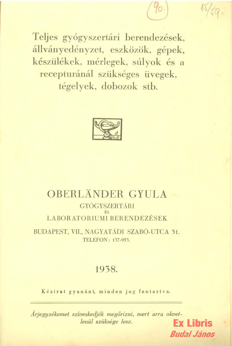 Oberländer Gyula gyógyszertári berendezések 1938